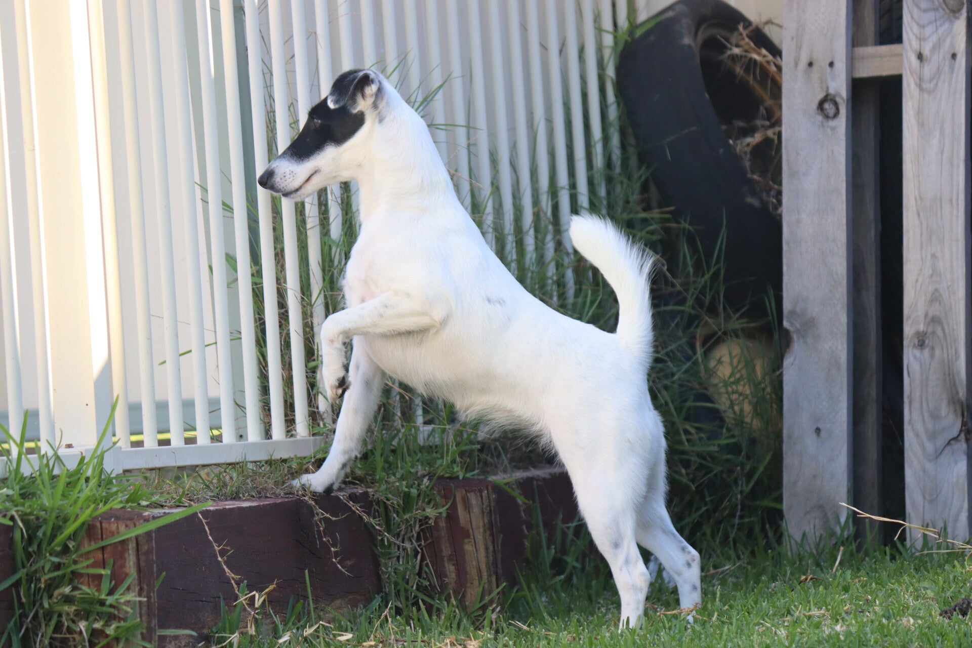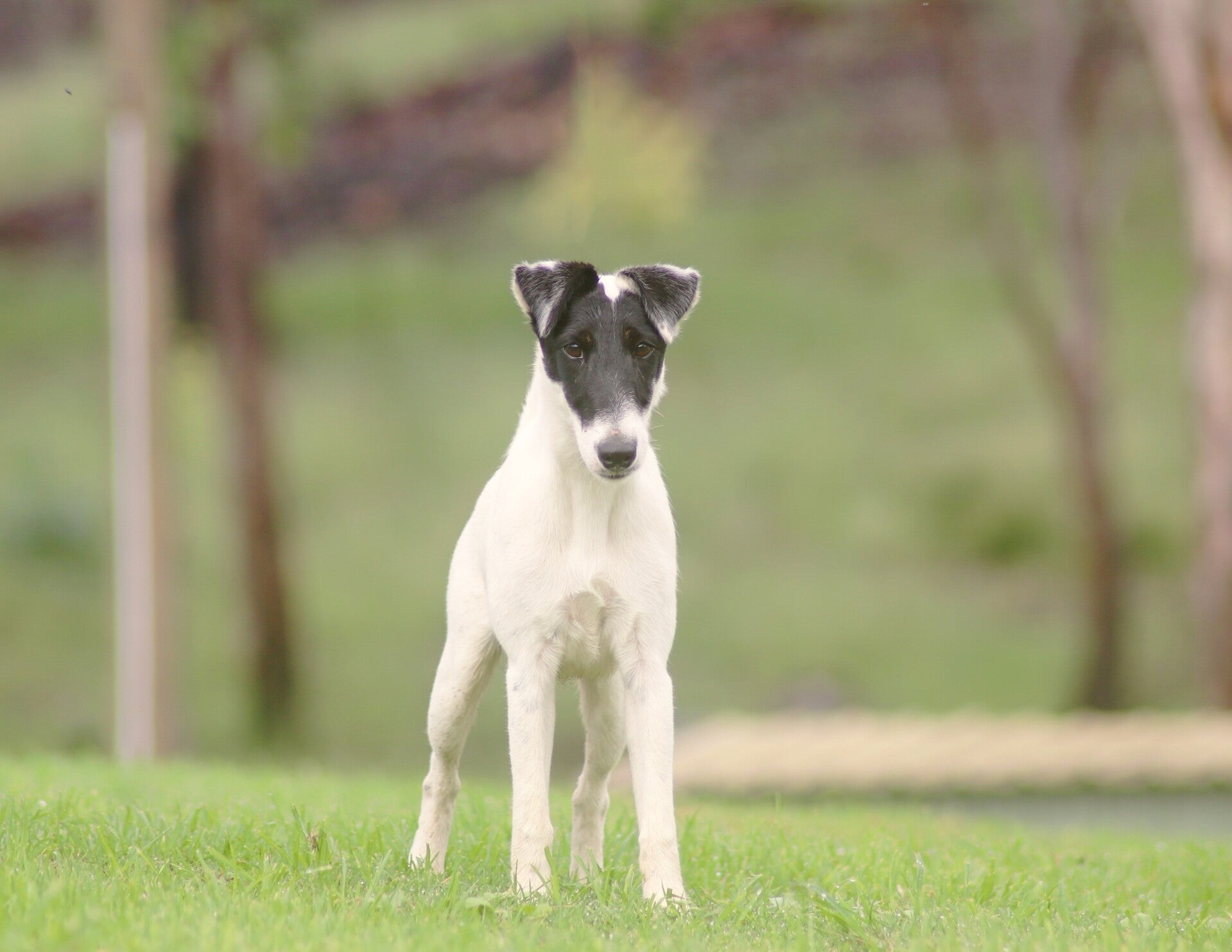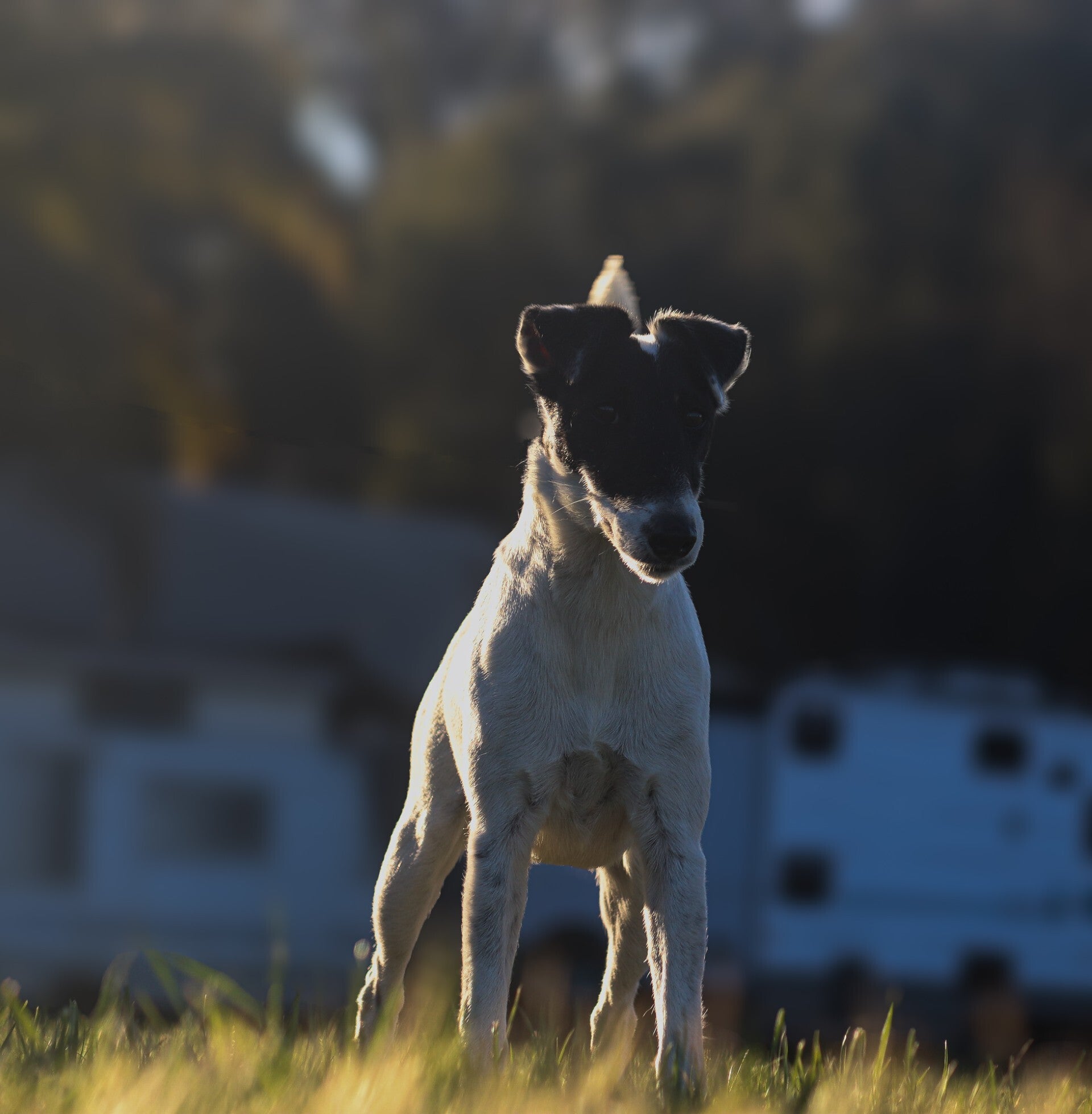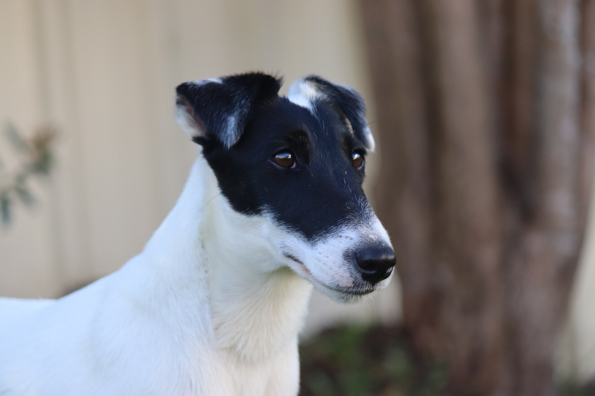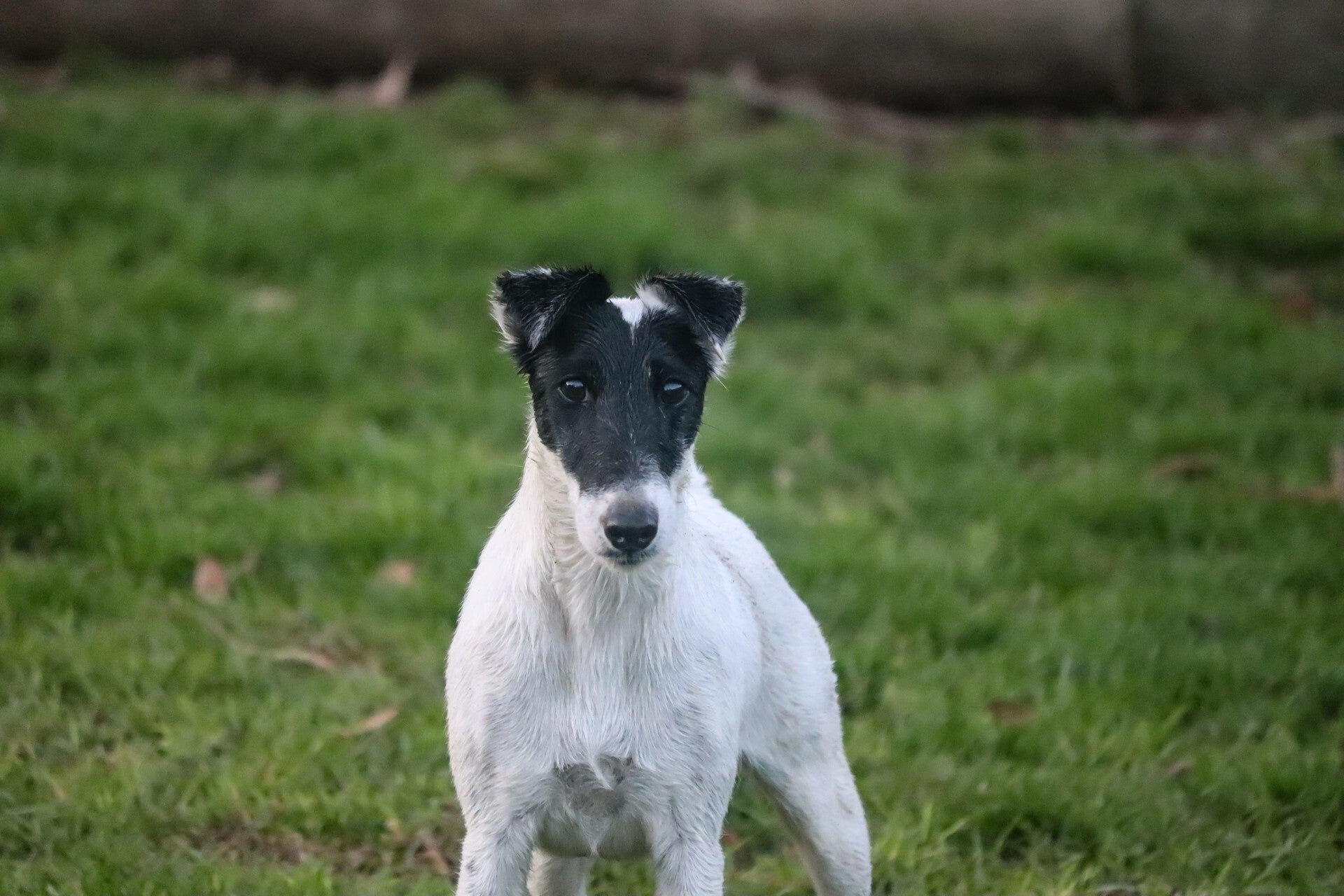 Jada is a feminine and well-balanced bitch, displaying a gentle yet alert temperament true to the Smooth Fox Terrier.